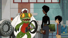 - Фред — страстный любитель комиксов и супергеройских костюмов, мечтающий о приключениях. Фред озвучен Т. Джей. Миллером, чьё исполнение добавило персонажу живости, юмора и неординарности.